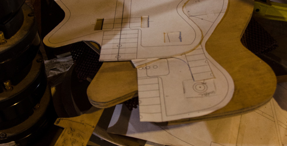 A quick word about materials. He works in both solid wood and laminated wood. For laminated applications, full hollow archtops, he hand lays up individual veneers, 5 layers, to create top and back plates . Using solid wood for semi-hollowbodies is an important part of how he gets so much resonance out of a design that inherently doesn't want to resonate. But for archtops solid wood often resonates too much for the player working at moderate stage volumes. His archtops use laminated materials to help control this.